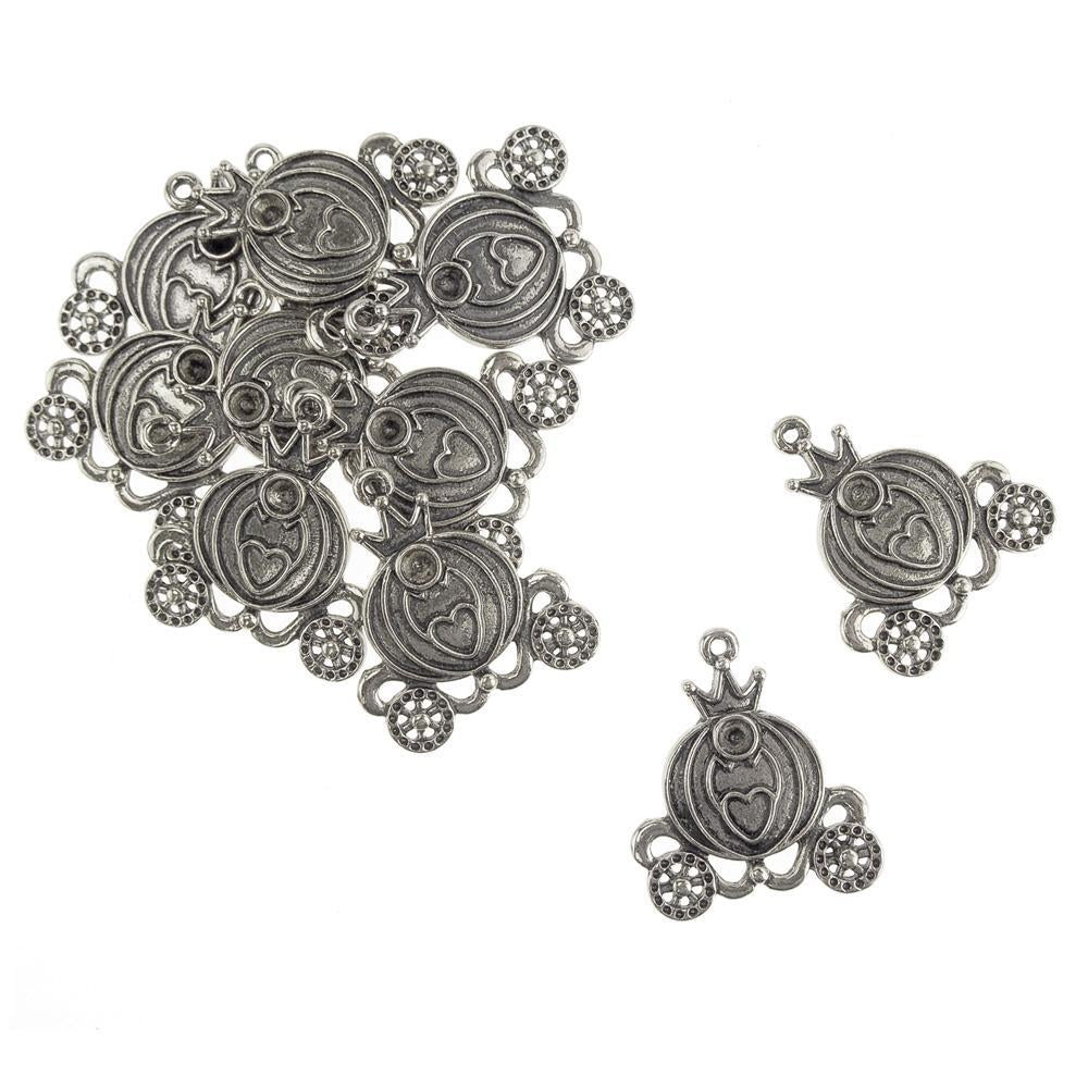 Antique Style Metal Princess Carriage Charms, 1-1/2-Inch, 10-Piece