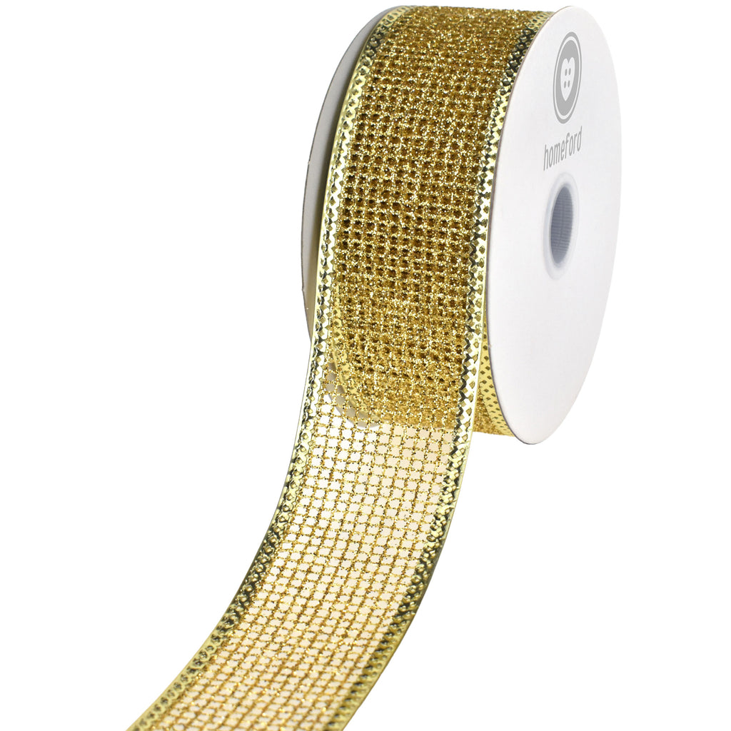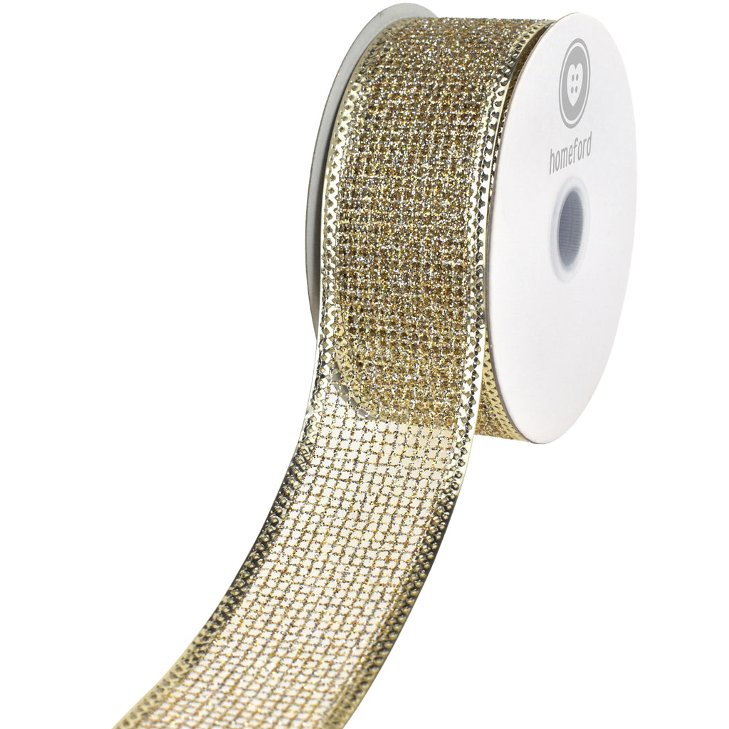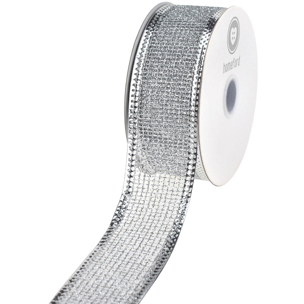 Christmas Glittered Net Metallic Edge Wired Ribbon, 1-1/2-inch, 10-yard