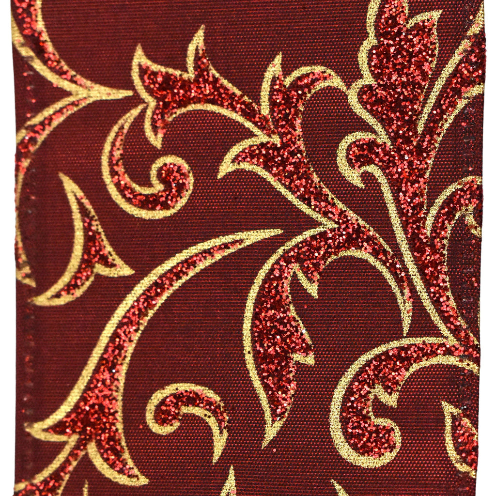 Christmas Glittered Swirls Metallic Faux Linen Wired Ribbon, 2-1/2-inch, 10-yard