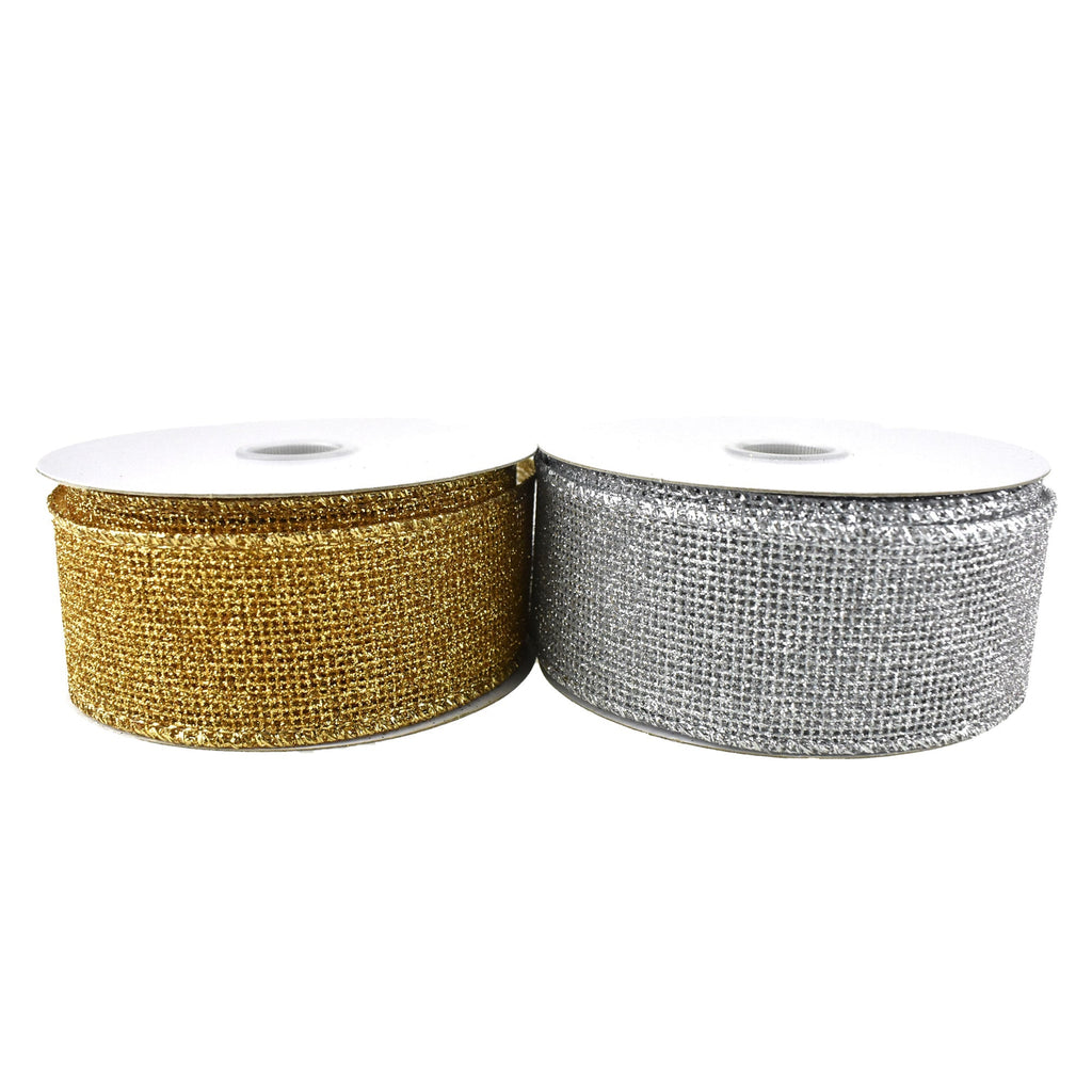 Add your own personal touch to any project! This ribbon features an shiny, glittered net pattern, perfect for Christmas. Take your decorating or DIY to the next level! Length: 10 yd Width: 1.5"
