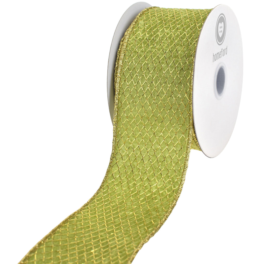Christmas Net Overlay Velvet Wired Ribbon, 2-1/2-inch, 10-yard