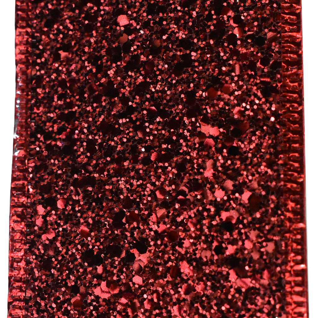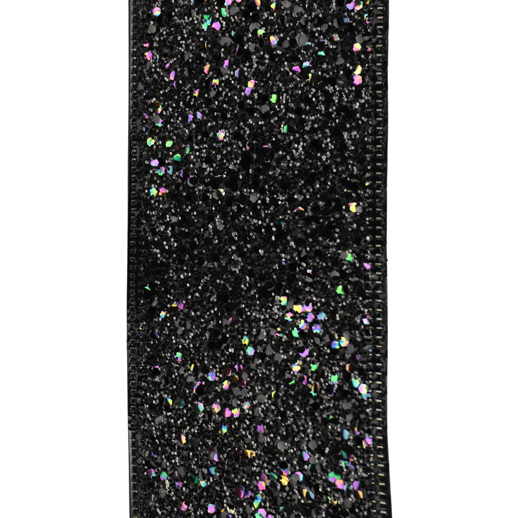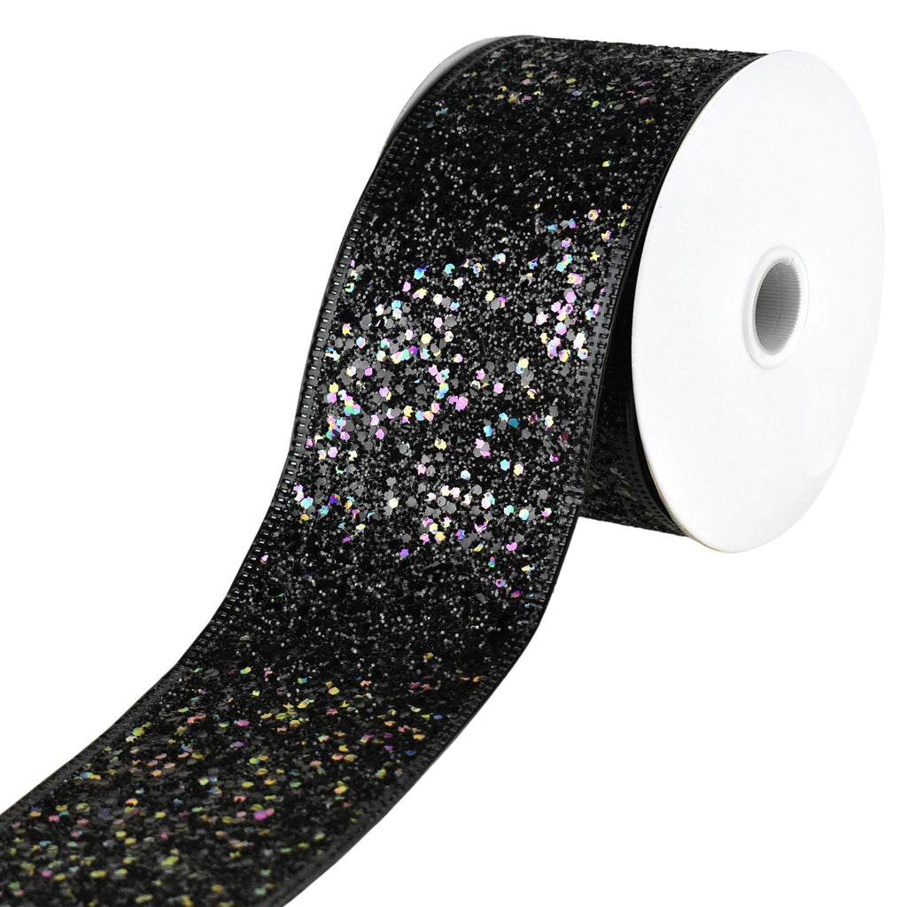 Add your own touch to any project! This stylish ribbon features an assortment of glitter flecks in varying sizes for the perfect touch of glamour to any home decor, DIY, or craft project you use these with. Take your decorating or DIY to the next level! Note: Contains wire Length: 10 yd Width: 2.5"