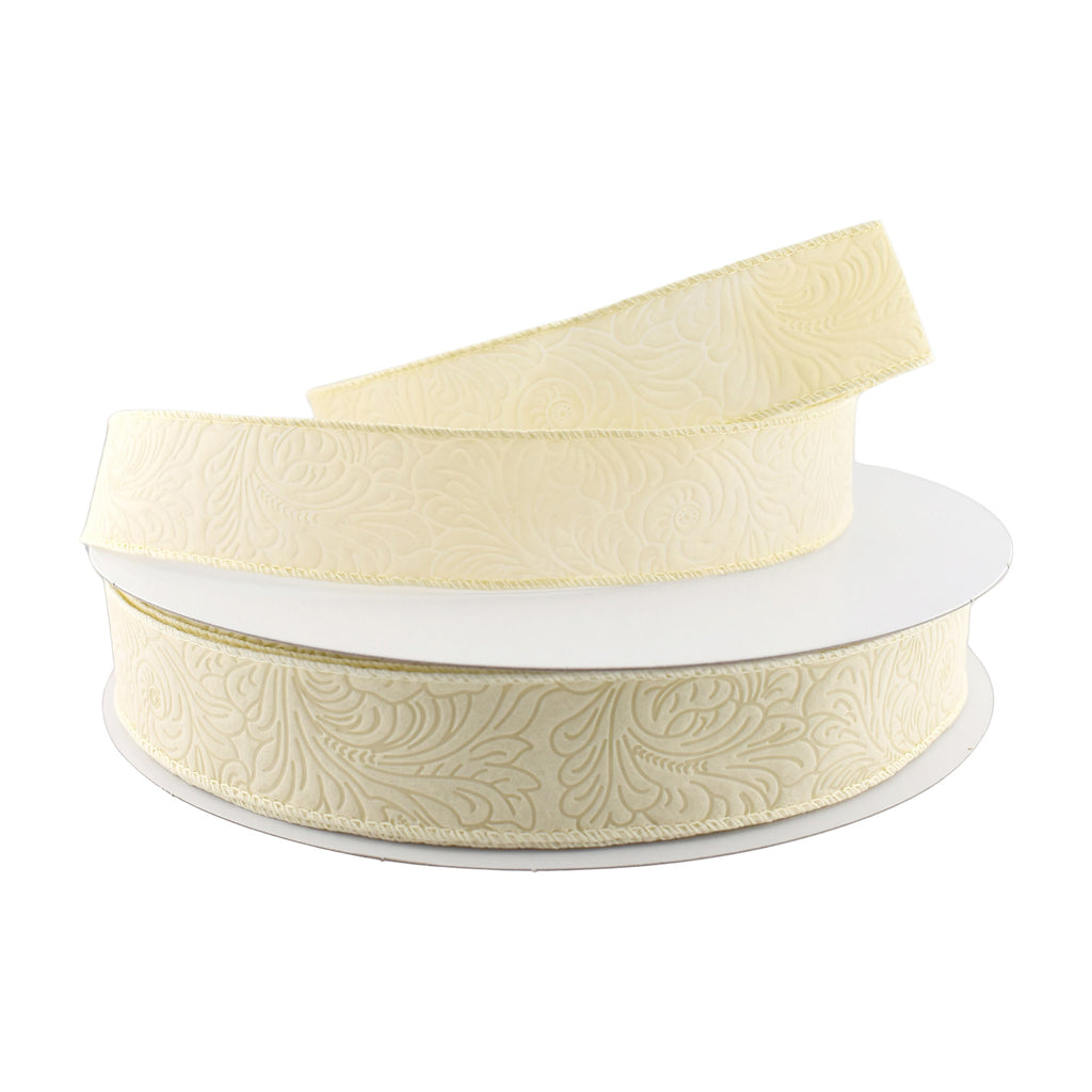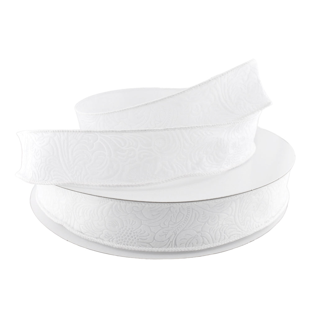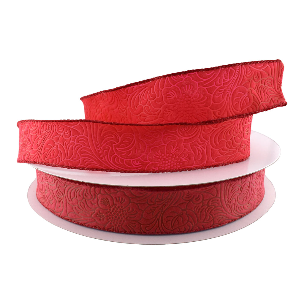 Embossed Flowers Hot Cut Edge Floral Wrap Ribbon, 1-1/2-inch, 50-yard