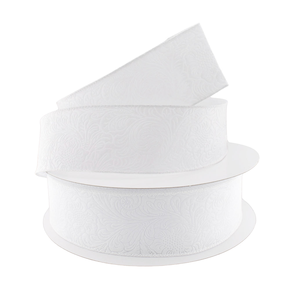 Embossed Flowers Hot Cut Edge Floral Wrap Ribbon, 2-1/2-inch, 50-yard