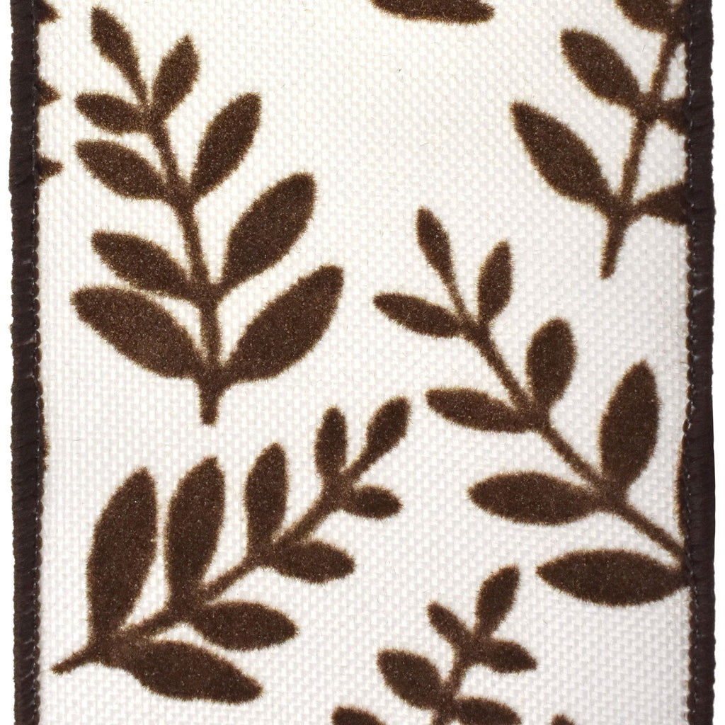Flocked Fern Branches Faux Linen Wired Ribbon, 2-1/2-inch, 10-yard