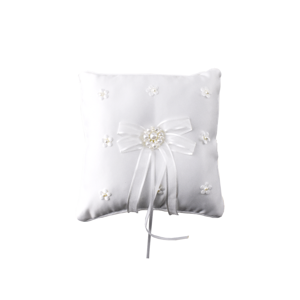 Floral Pearl Ribbon Lace Wedding Pillow, 6-1/2-Inch