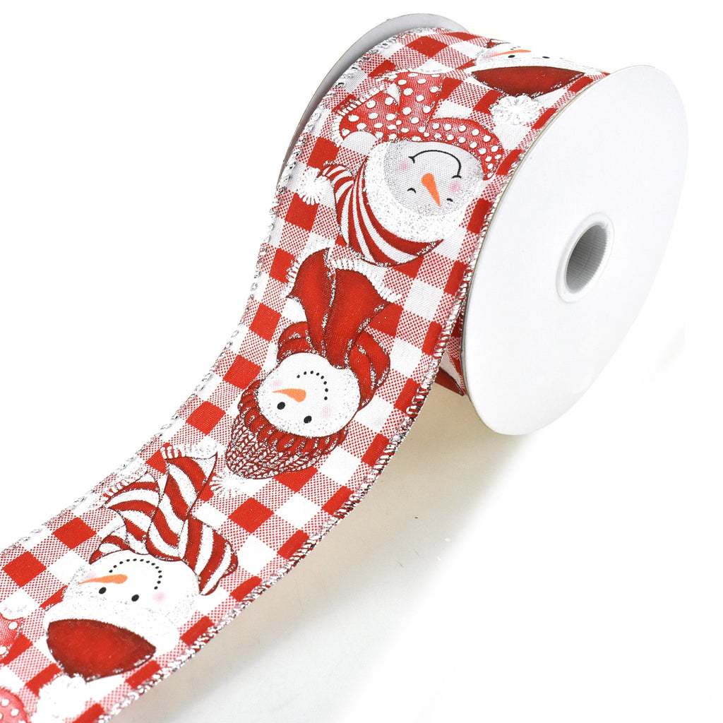 Happy Snowman Gingham Wired Ribbon, 2-1/2-Inch, 10-Yard