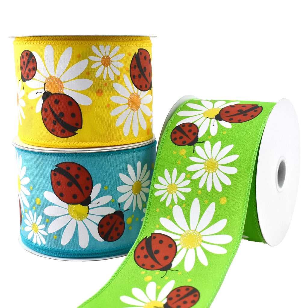 Ladybugs and Daisies Wired Ribbon, 2-1/2-Inch, 10-Yard