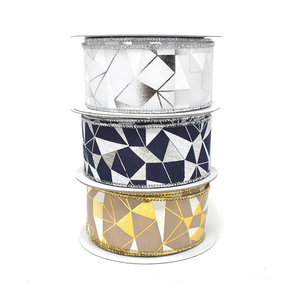 This ribbon is also great for arts and crafts, home decor projects and other DIY projects. Features a lovely metallic and white abstract pattern. Made of 100% polyester.