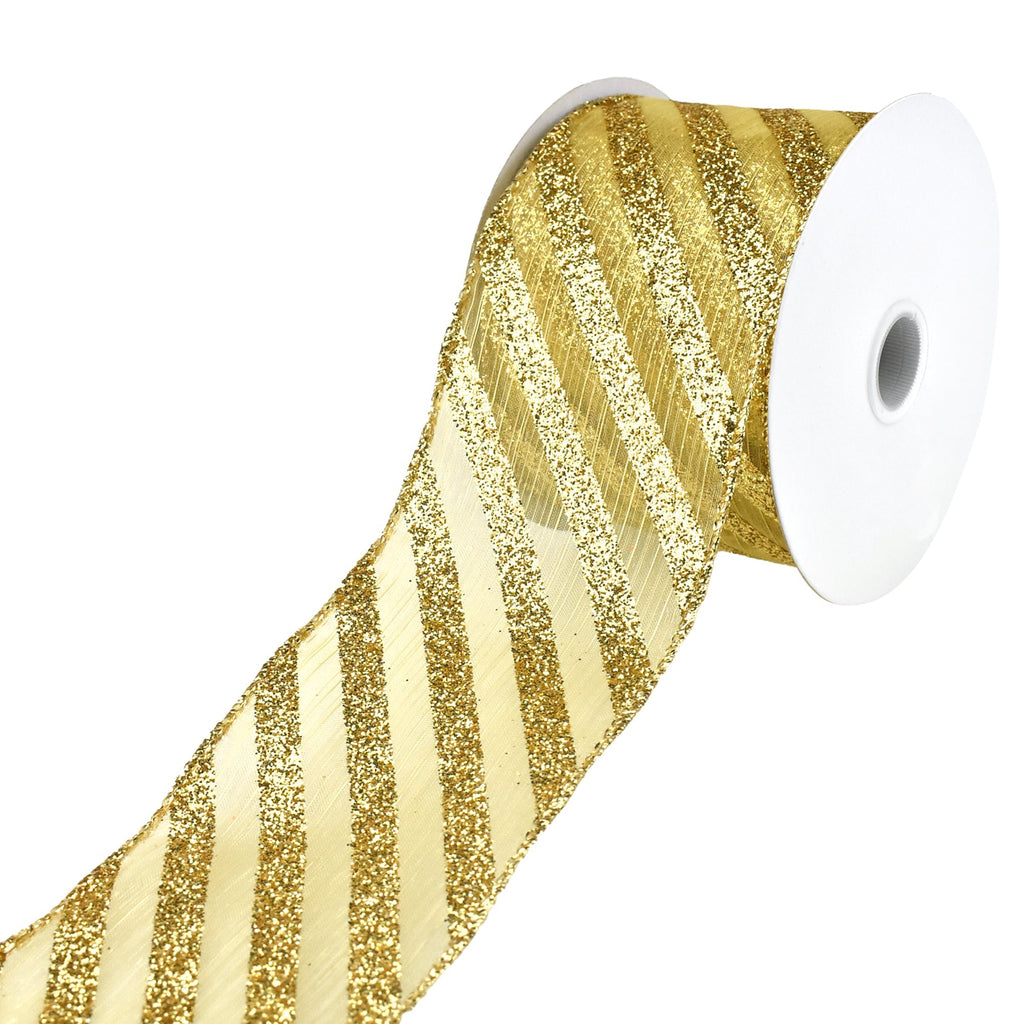 Christmas Metallic Stripe and Glitter Candy Cane Wired Ribbon, 2-1/2-Inch, 10-Yard