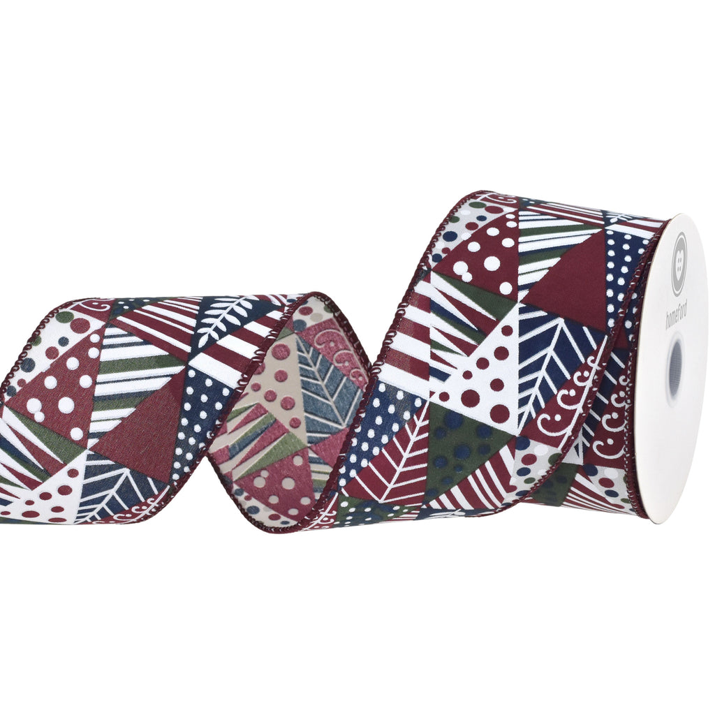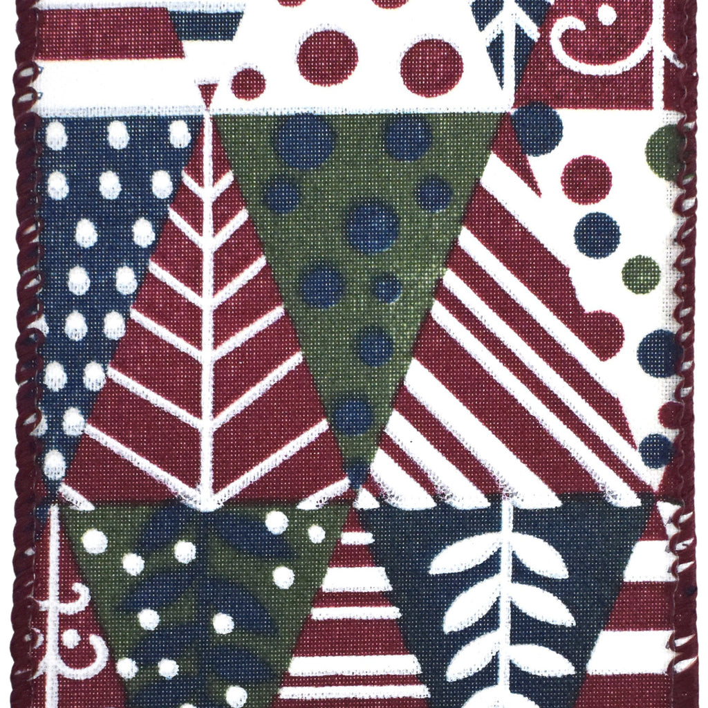 Abstract Christmas Tree Collage Wired Ribbon, 2-1/2-inch, 10-yard