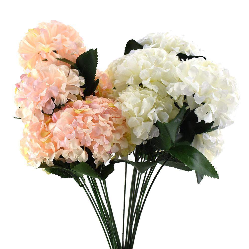 Can be used for flower arrangements, holiday decorations, and DIY projects. Each spray features three hydrangea flowers in a ivory or blush color. Measurements are for each individual spray.