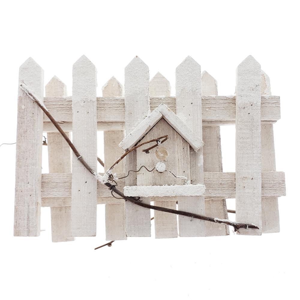 Christmas Snowed Wood Picket Fence Decoration, White, 20-Inch x 8-Inch
