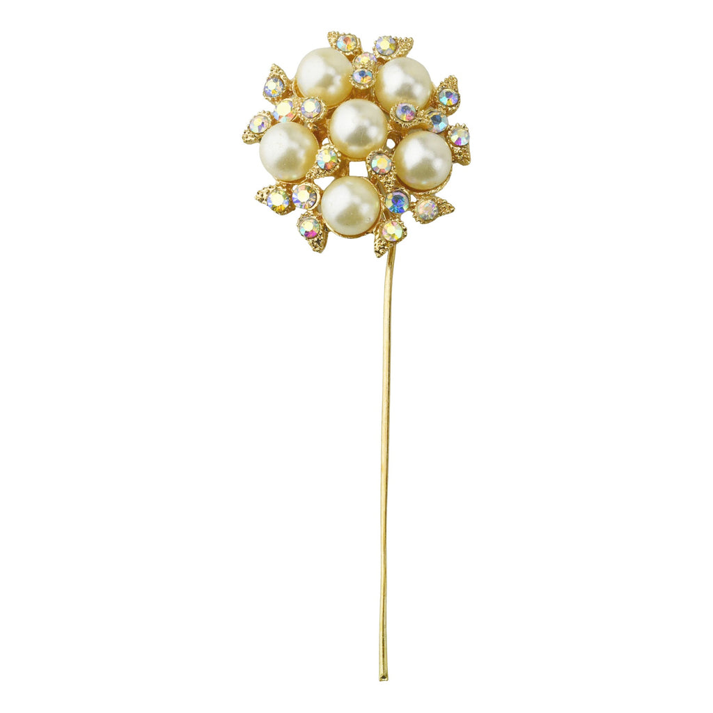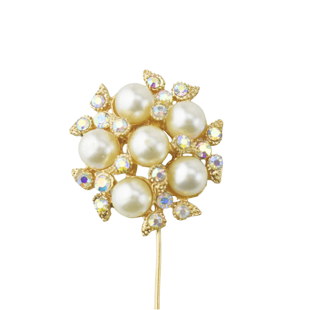 Rhinestone Pearls Floral Pins, 3-1/2-Inch, 6-Count - Gold
