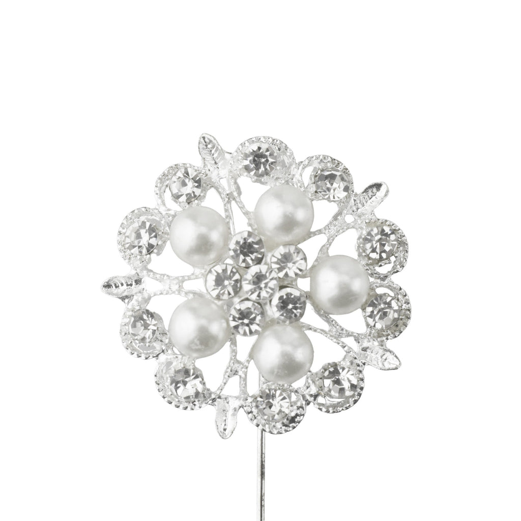Rhinestone Pearls Floral Pins, 3-1/2-Inch, 6-Count - Silver