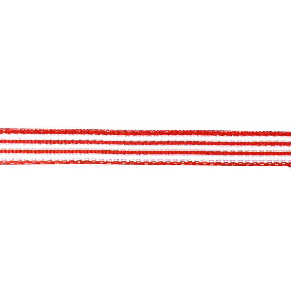 These Christmas horizontal stripe ribbons are perfect for the winter season. Their beautiful designs are excellent as decorations for gift wrapping and parties or events. These ribbons are also great for arts and crafts, home decor projects and other DIY projects. Features horizontal stripes in the colors red, hunter green, lime and iridescent white. Made of 90% polyester and 10% metallic. Width: 3/8" Length: 10 yards
