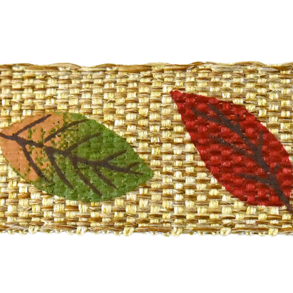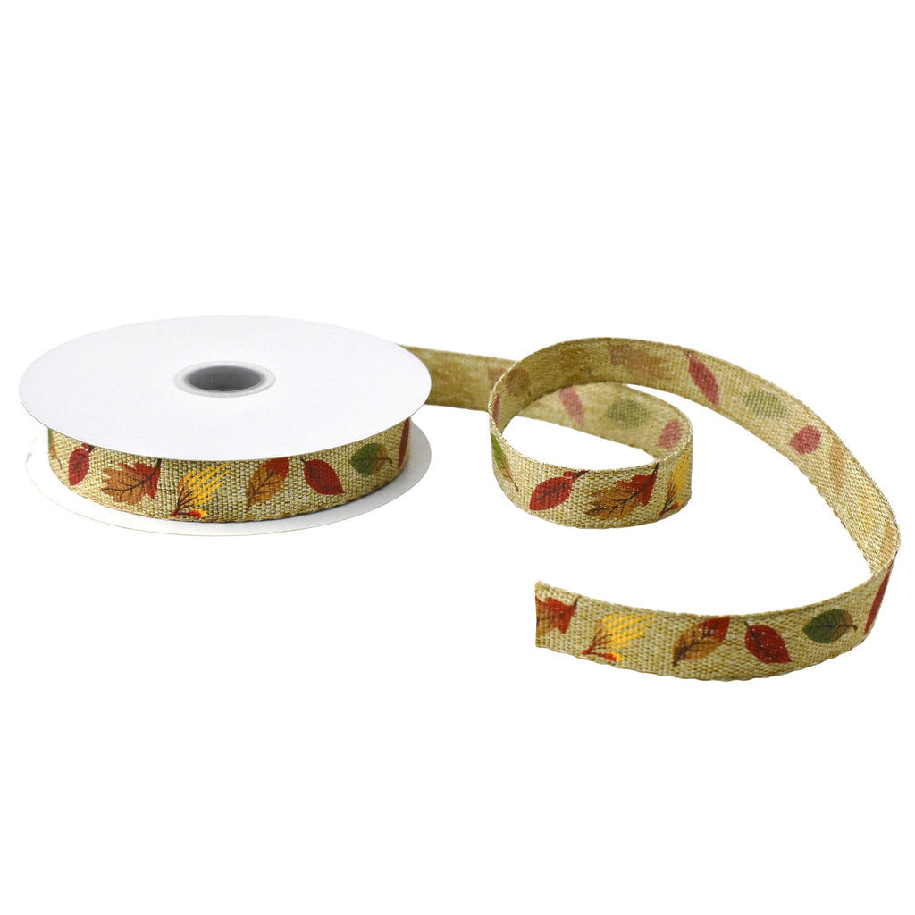 Fall Leaves Faux Linen Ribbon, 5/8-inch, 10-yard