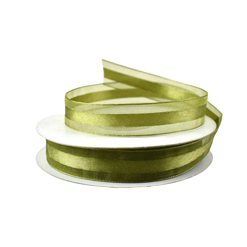 This ribbon adds the perfect finishing touch to floral arrangements and crafts. Features distinct satin stripes on the top and bottom edges and sheer organza ribbon in the center. It's perfect for wrapping gifts, adding an elegant bow to hand-crafted wreaths, and decorating mantels, cross streets and more. Length: 25 yds Width: 0.625"