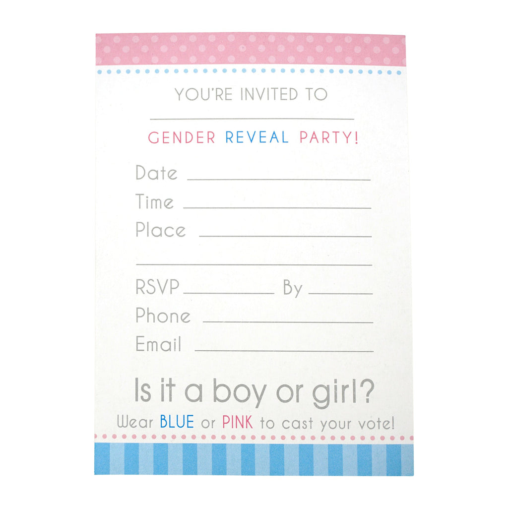 Gender Reveal Party Invitations, 6-Inch, 8-Count
