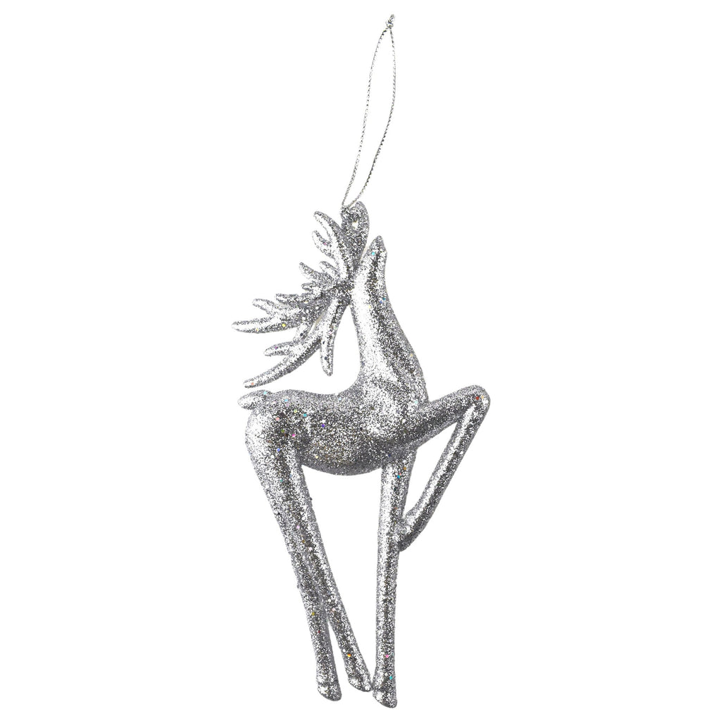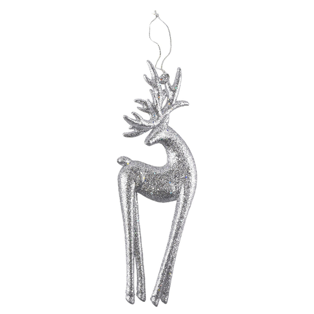 Glittered Deer Christmas Ornaments, 6-Inch, 2-Piece - Silver