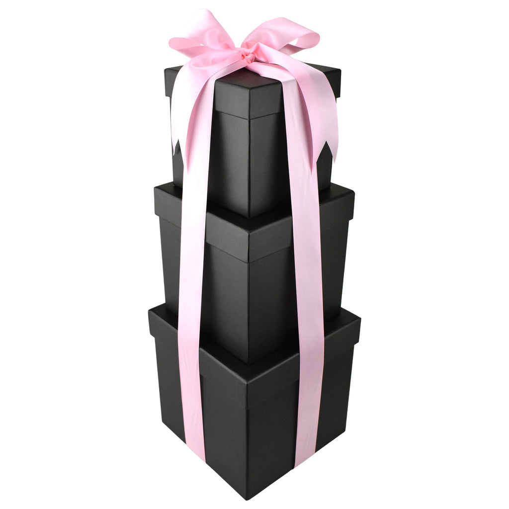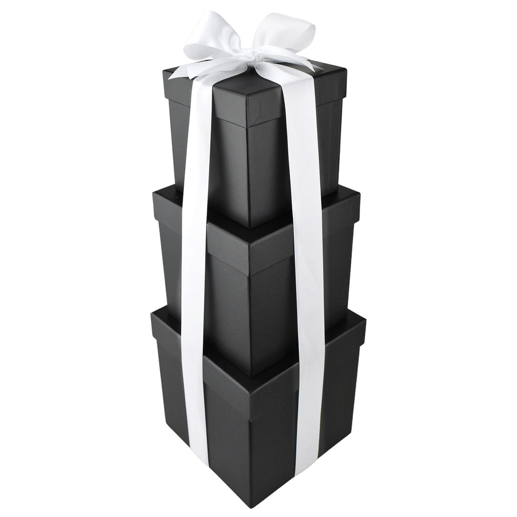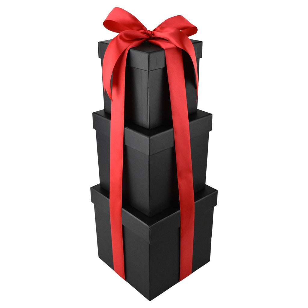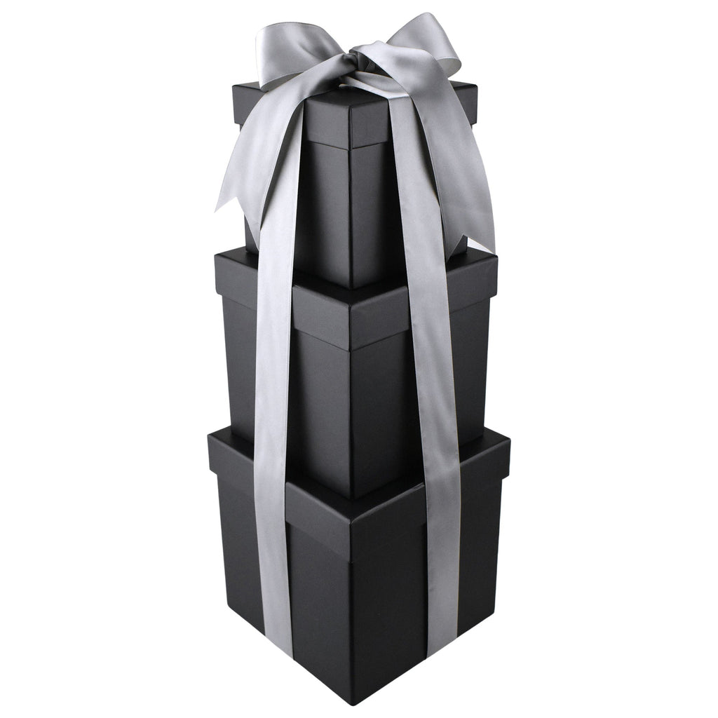 Nested Square Gift Boxes, Black, 5-inch, 6-inch, 7-inch, 3-piece, 1.5-inch Satin Ribbon