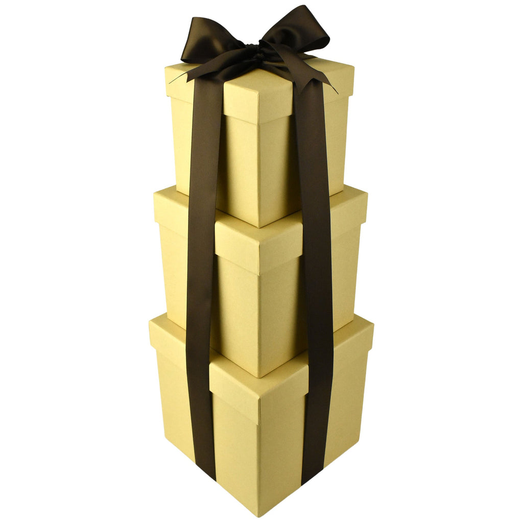 Nested Square Gift Boxes, Natural Kraft Brown, 5-inch, 6-inch, 7-inch, 3-piece, 1.5-inch Satin Ribbon