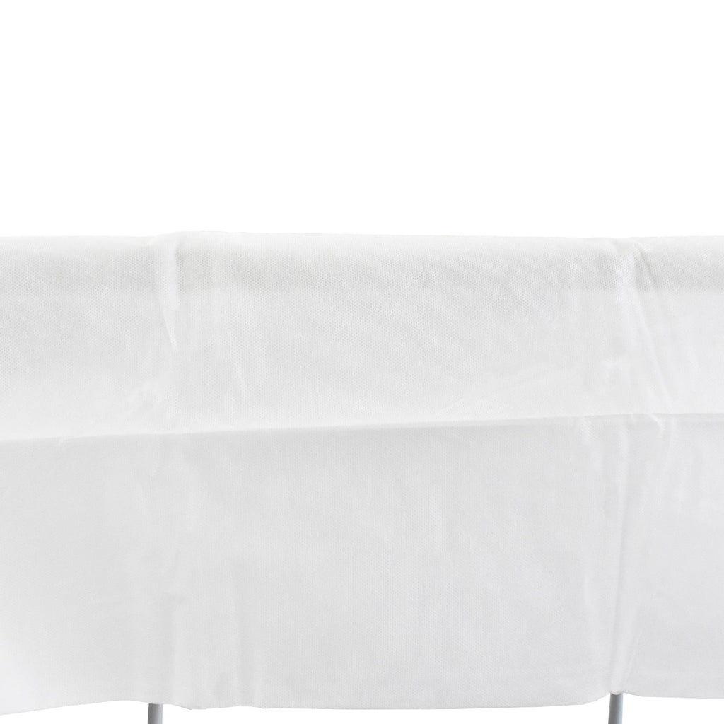 Whether you're hosting a family gathering, a wedding, or a special event, this durable and easily cleanable table cover will protect your table and make clean up a breeze. It's easy to set up and easy to fold and store for additional use. The woven material gives an elegant natural finish to your party decor. Length: 110" Width: 56"