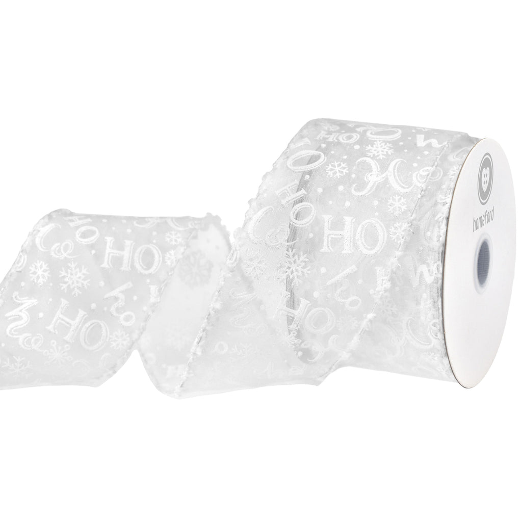 Christmas Ho Ho Ho Organza Fuzzy Edge Wired Ribbon, 10-yard