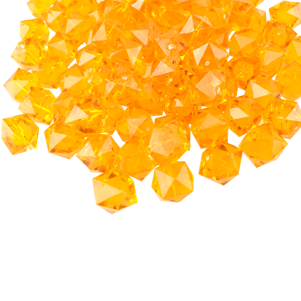 Add some sparkle to your decorations or DIY projects with these acrylic diamonds. These are perfect for scattering on tables or filling vases to create tunning centerpieces. They each have holes so they can be hung and displayed anywhere. Diamond Length: 1" Diamond Width: 1" 100 Pcs.