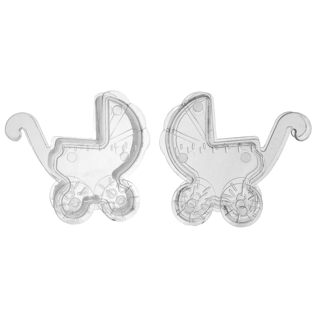Put your favors on display with these adorable cases! Shaped like baby strollers in a clear transparent plastic material, you can hold your favors or fill them with your favorite decorative fillers. The perfect touch to use at any event! Pack: 12 pieces Length: 3" Width: 2.75"