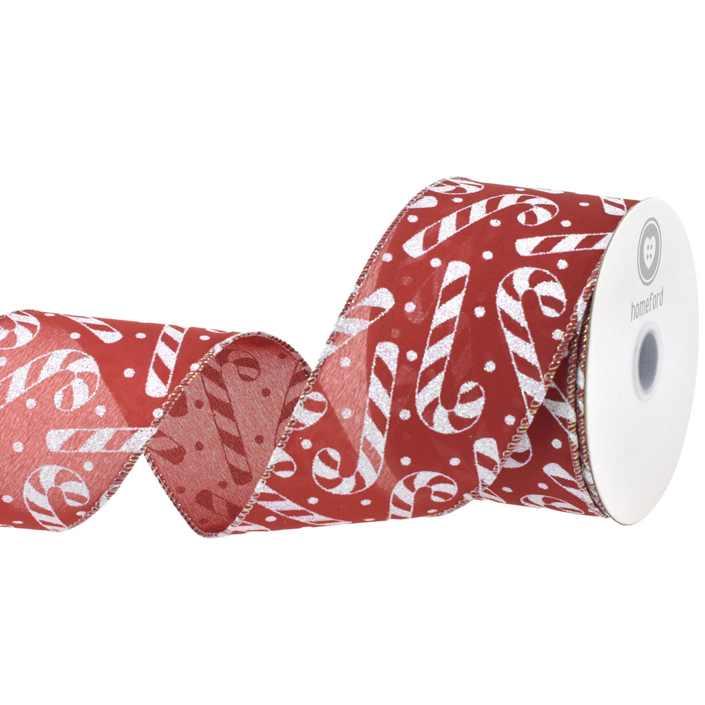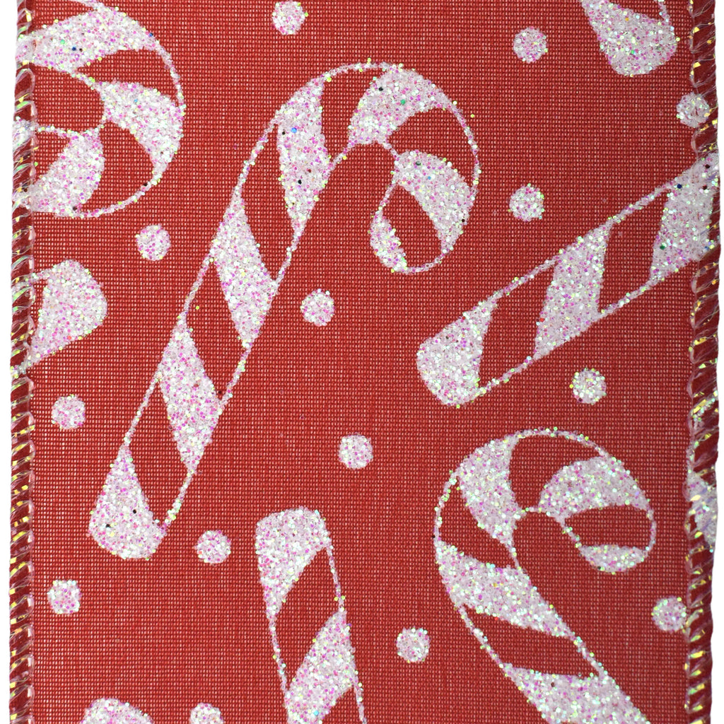 Christmas Glitter Candy Cane Polka Dots Wired Ribbon, 2-1/2-inch, 10-yard