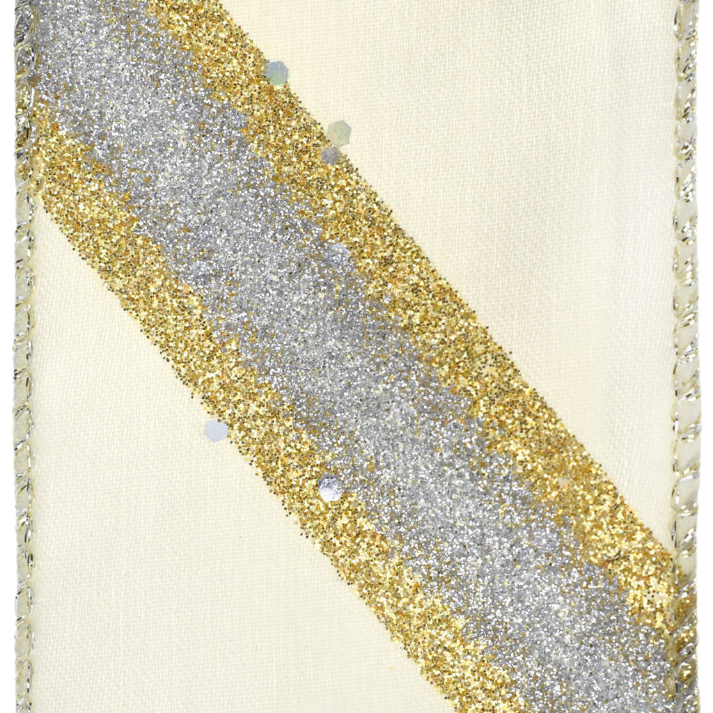Christmas Glittered Diagonal Stripes Wired Ribbon, 2-1/2-inch, 10-yard