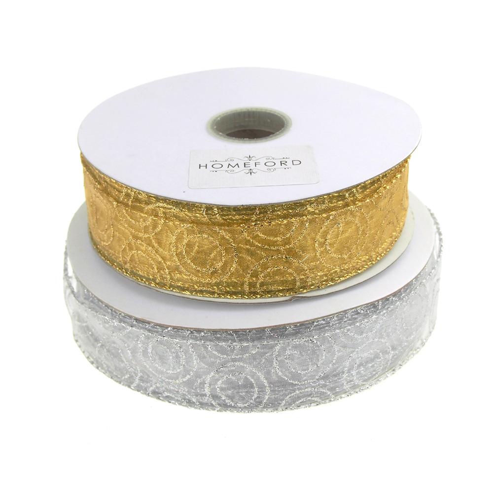 This sheer organza ribbon features glittery circles and a wired trim, perfect for the holiday season! Use to make wreaths, bows, for gift wrapping, or decorate your tree or mantle!