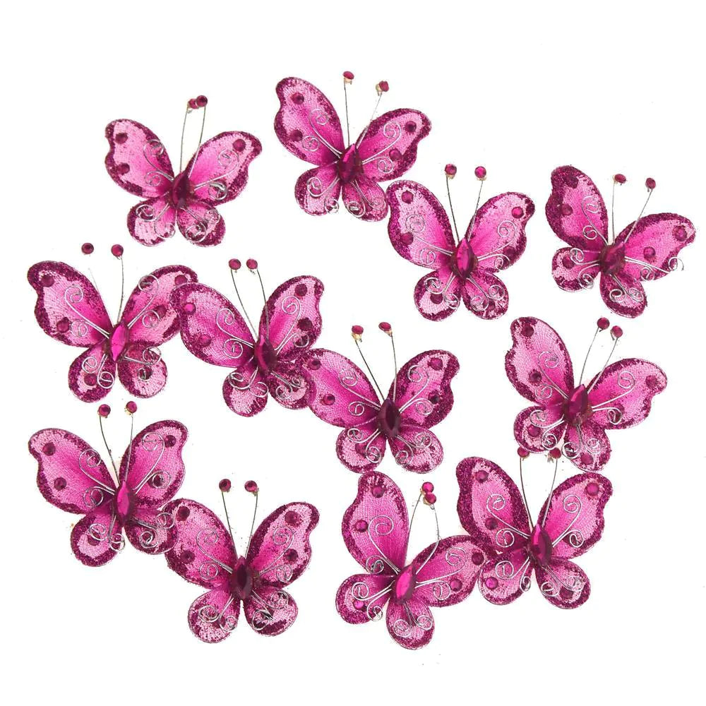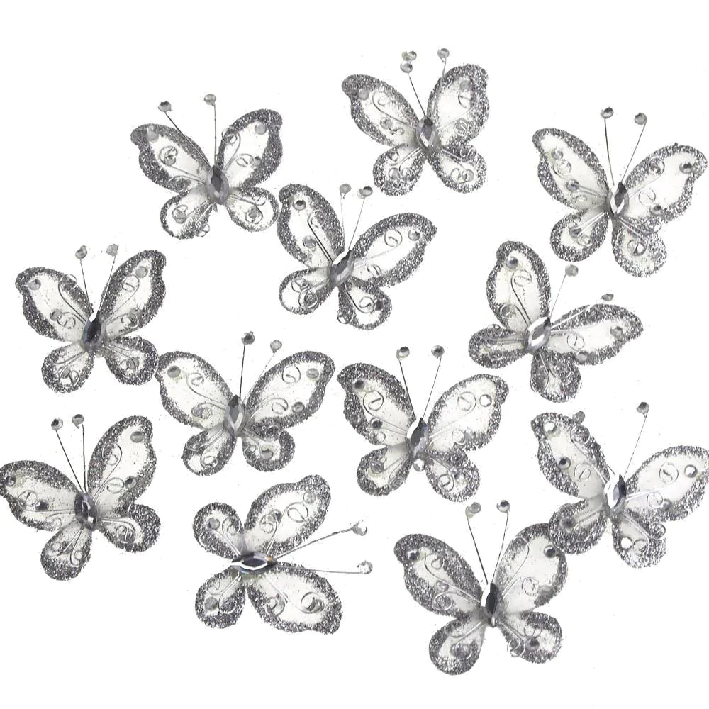 Organza Nylon Glitter Butterflies, 2-inch, 20-count