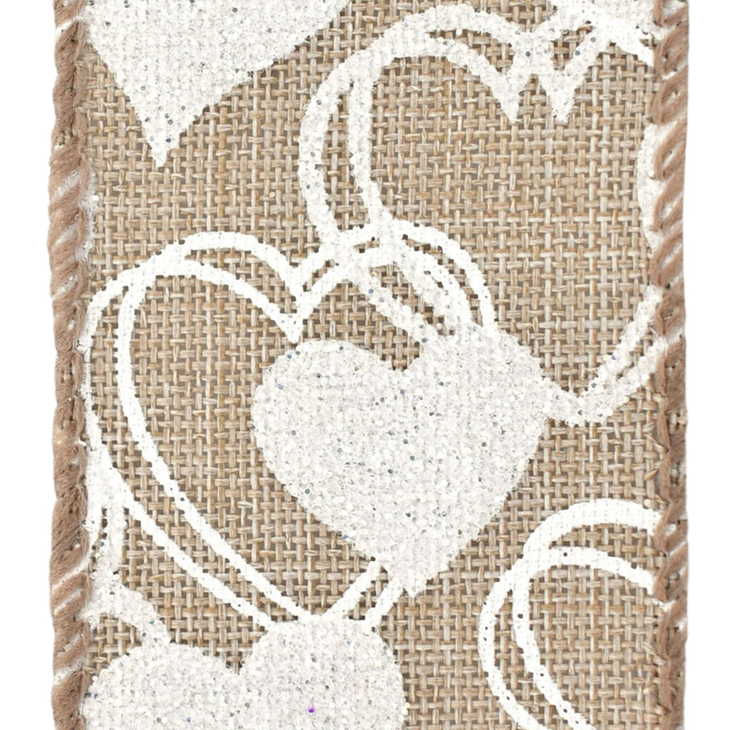 Valentine's Glittered Hearts Faux Linen Wired Ribbon, 1-1/2-inch, 10-yard