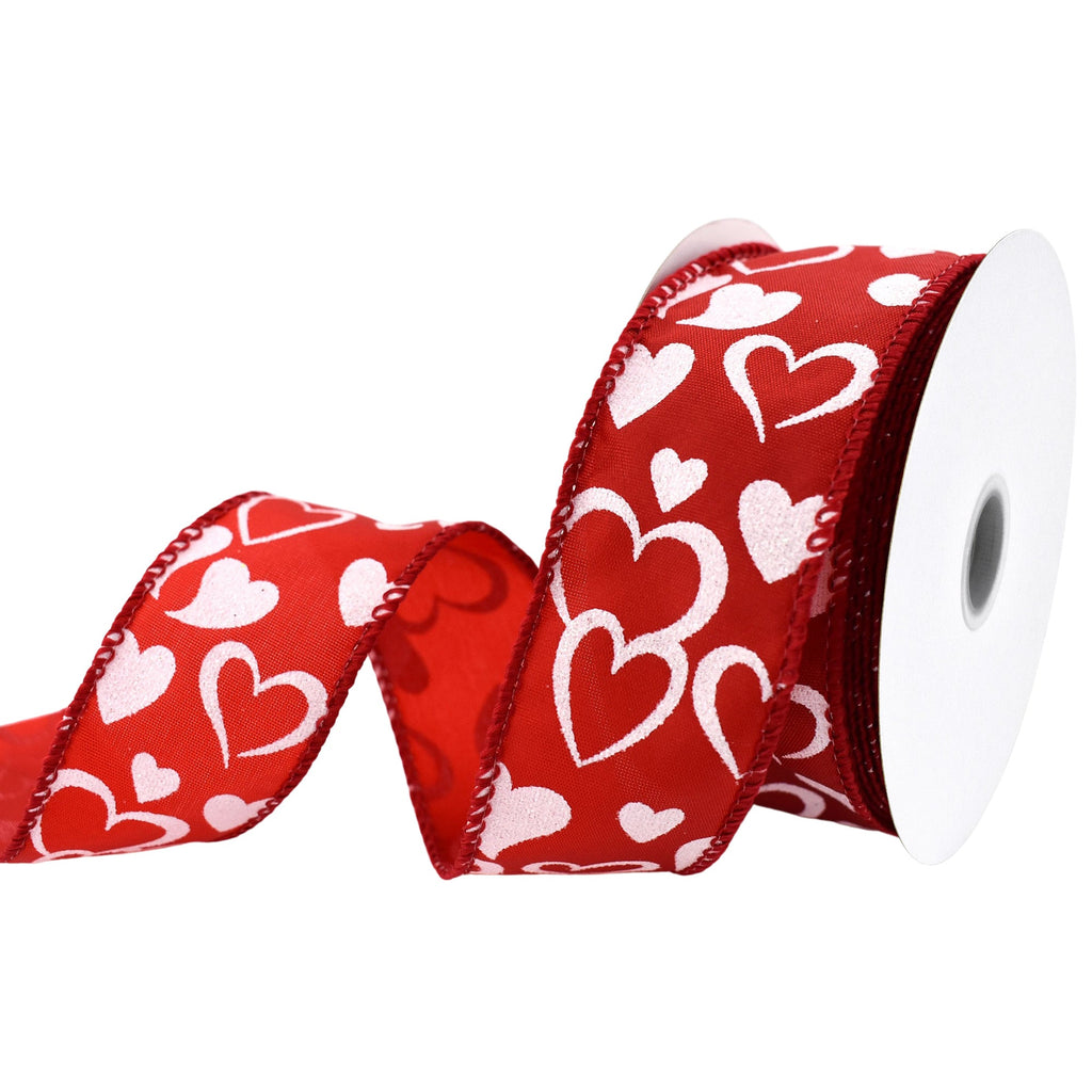 Valentine's Glittered Hearts Satin Wired Ribbon, 1-1/2-inch, 10-yard
