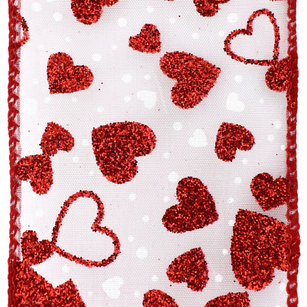 Valentine's Sheer Organza Glittered Hearts Wired Ribbon, 2-1/2-inch, 10-yard