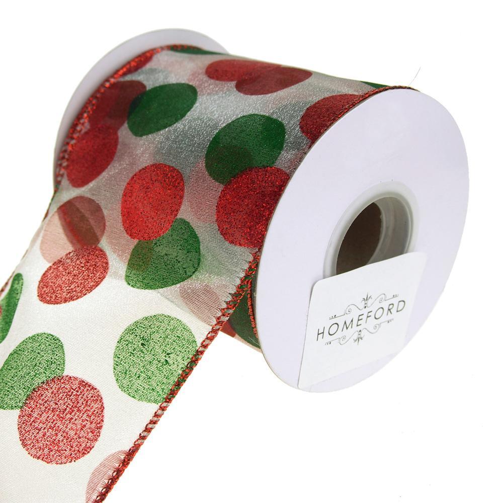 Glitter Dot Sheer Wired Holiday Christmas Ribbon, Red/Green, 10 Yards