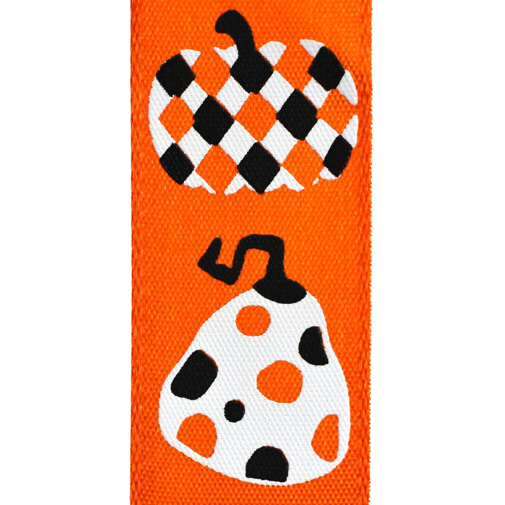 Halloween Argyle Pumpkins Satin Ribbon, 7/8-Inch, 10-Yard - Orange