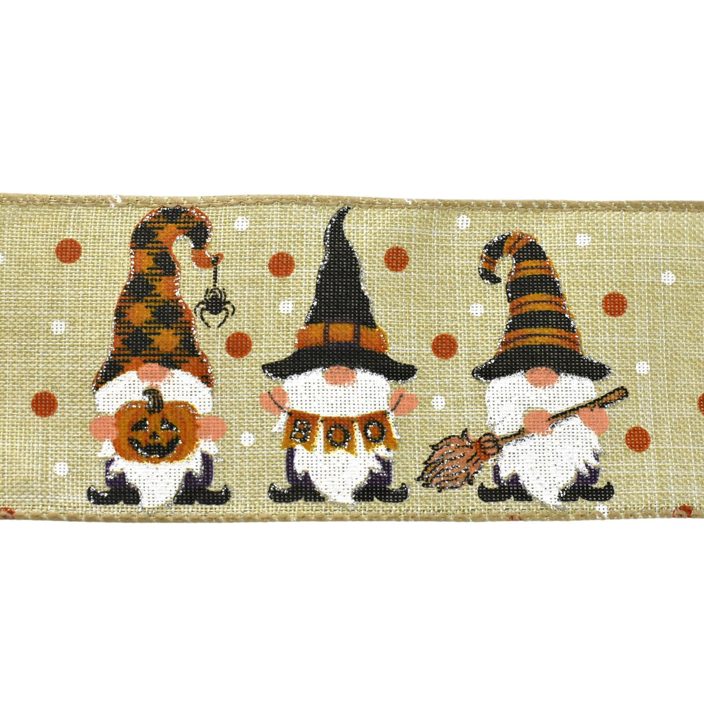 Halloween Gnomes Faux Linen Wired Ribbon, 2-1/2-Inch, 10-Yard