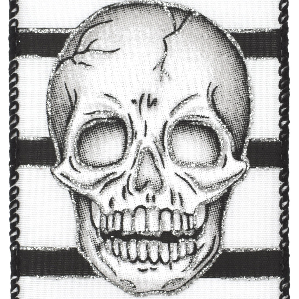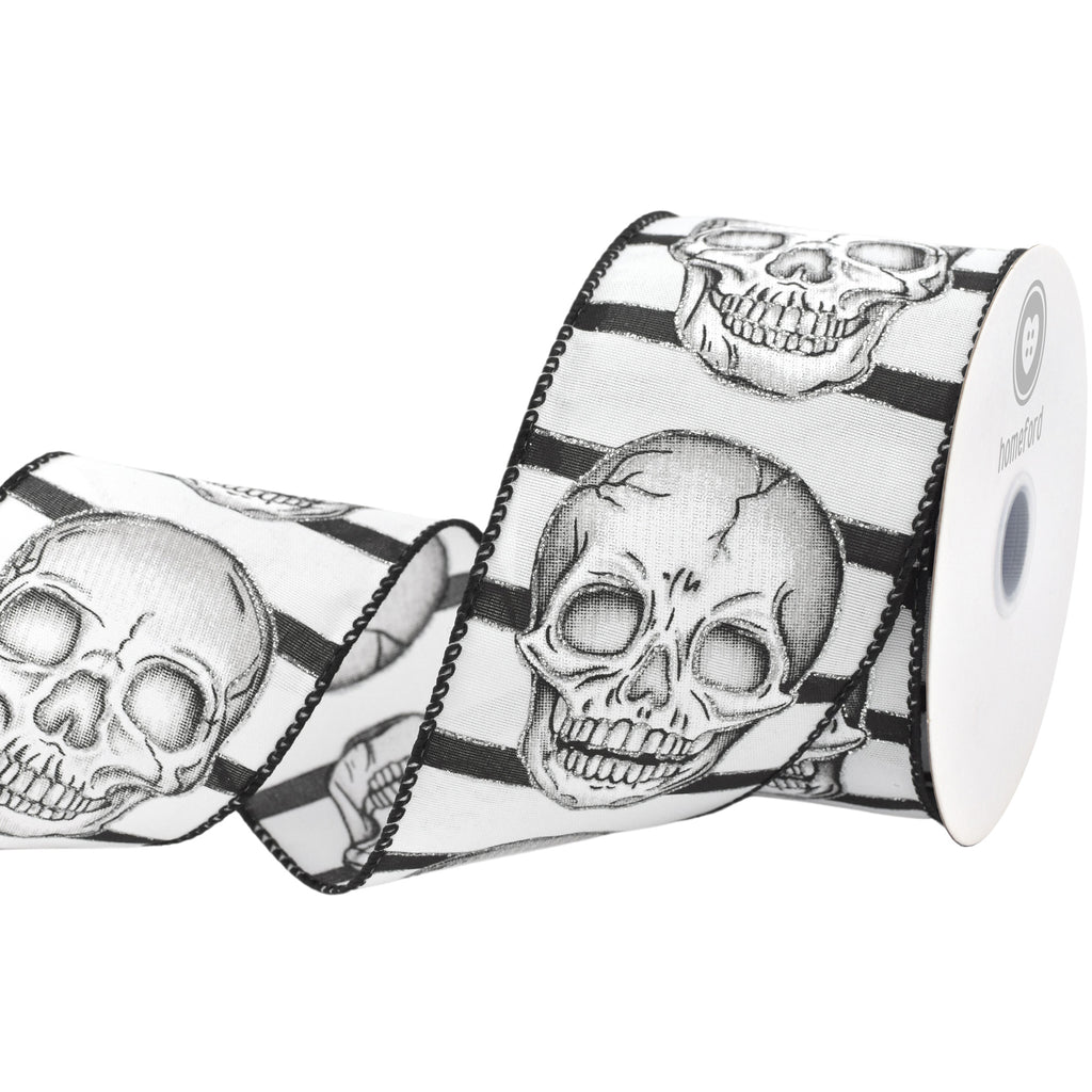 Halloween Vintage Skull Stripes Satin Wired Ribbon, 10-yard