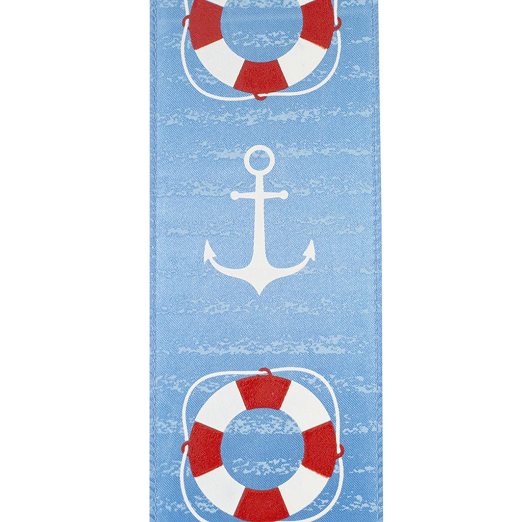 Summer Anchors Life Preservers Satin Wired Ribbon, 2-1/2-inch, 10-yard
