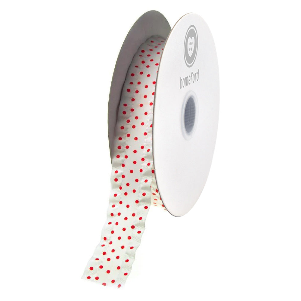 Ruffled Satin Polka Dot Ribbon, 1-1/2-inch, 25-yard