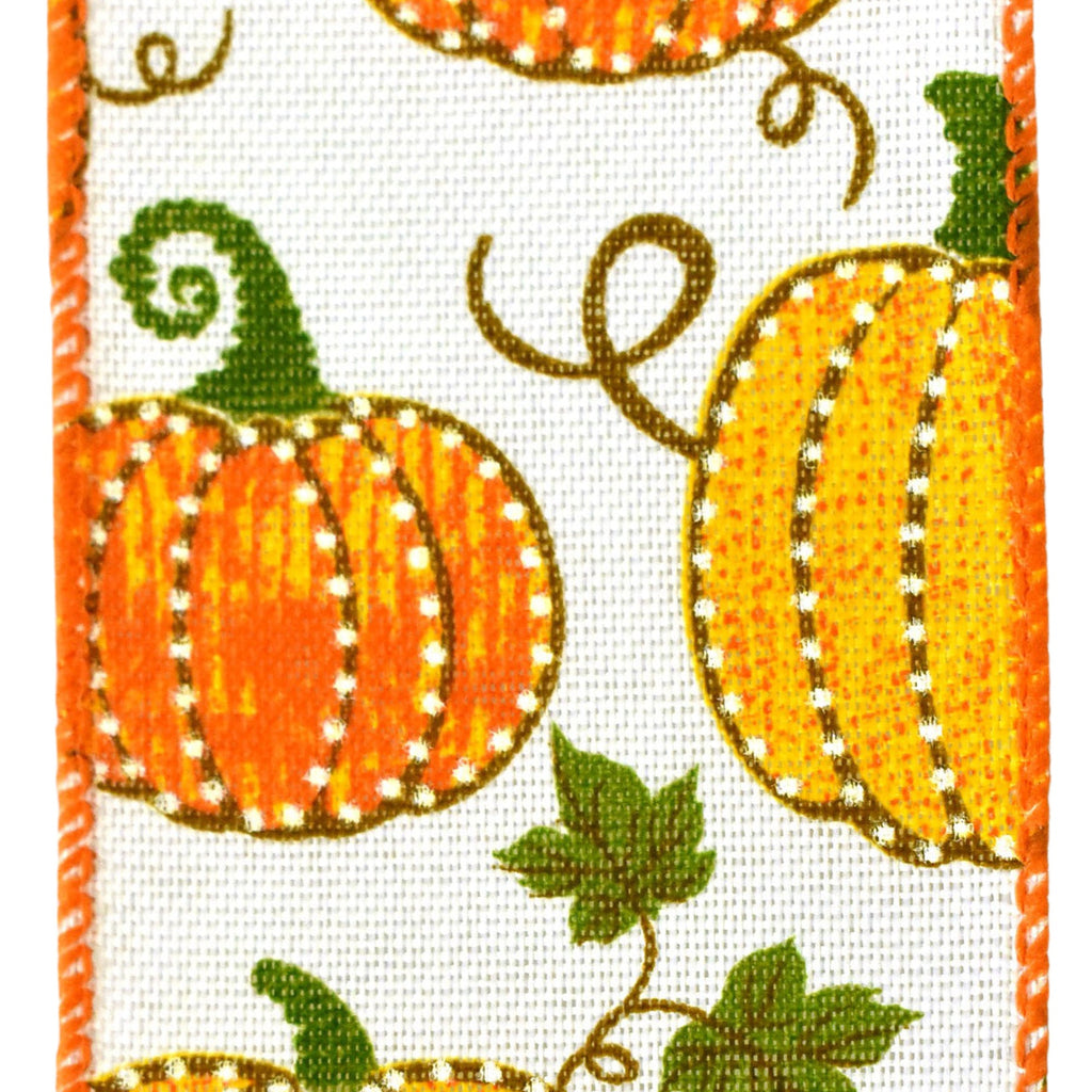 Autumn Dotted Pumpkins Faux Burlap Wired Ribbon, 2-1/2-inch, 10-yard