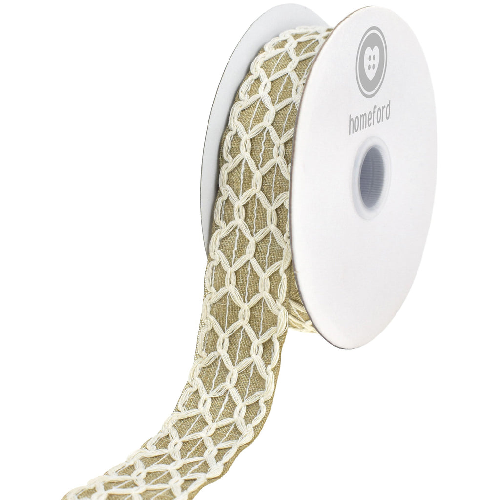 Scallop Weave Burlap Faux Linen Wired Ribbon, 1-1/2-inch, 10-yard