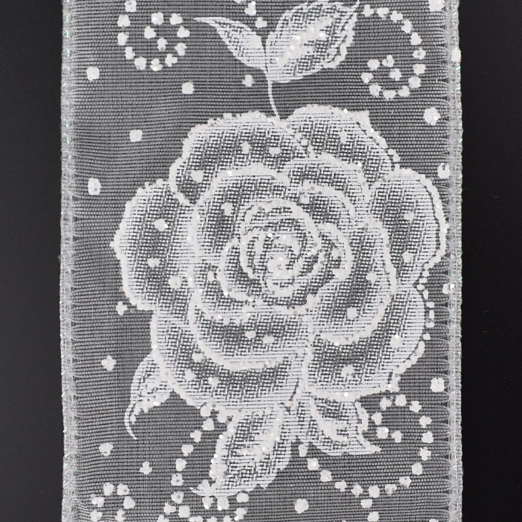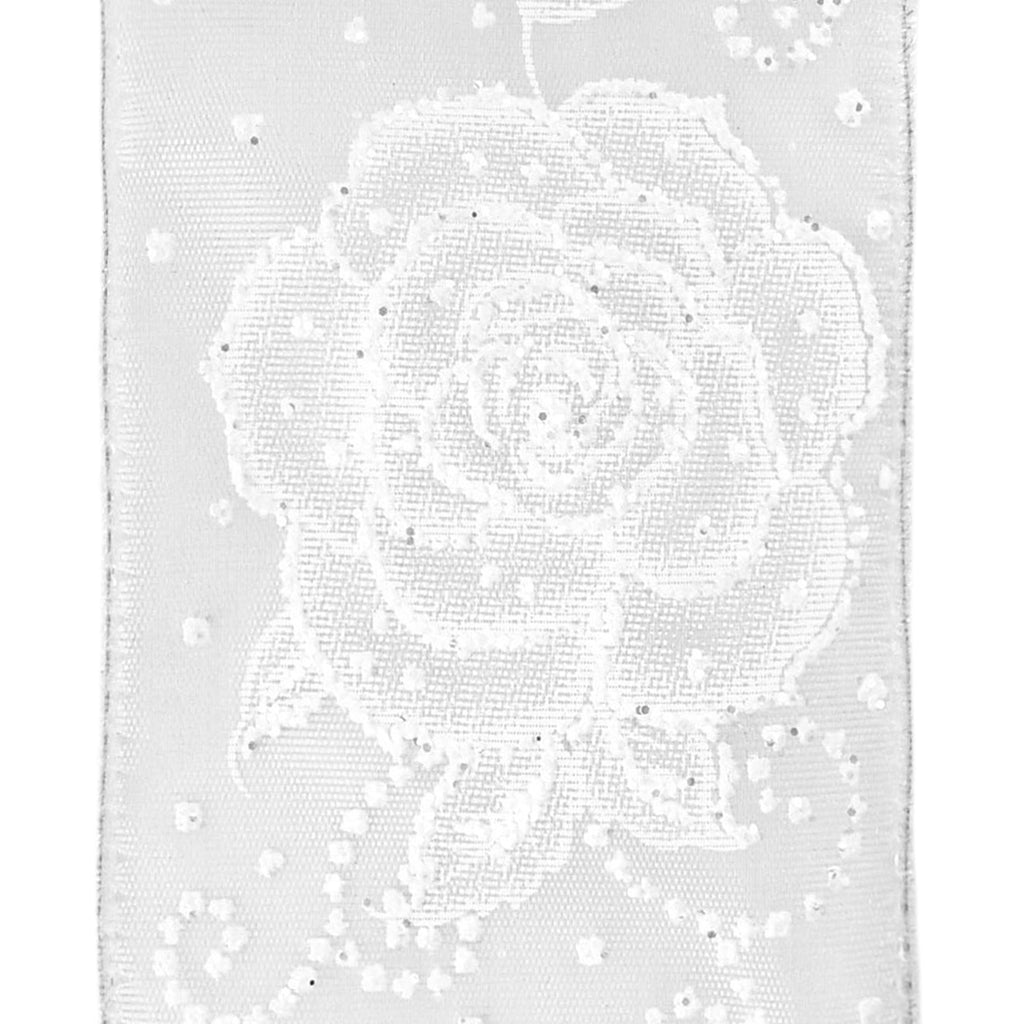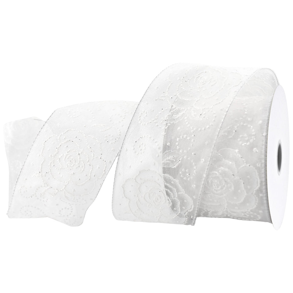 Sheer Organza Rose Pattern Glitter Dots Wired Ribbon, 2-1/2-inch, 10-yard