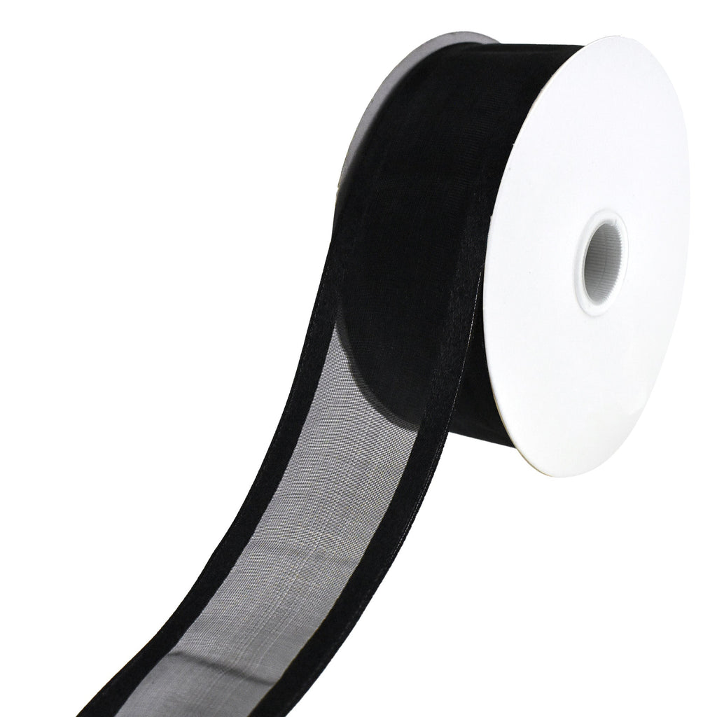 Sheer Organza with Satin Wired Edge Ribbon, 1-1/2-inch, 25-yard