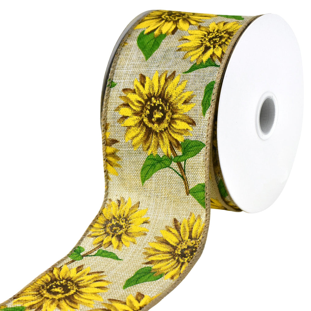 Sunflowers Faux Linen Wired Ribbon, 10-yard