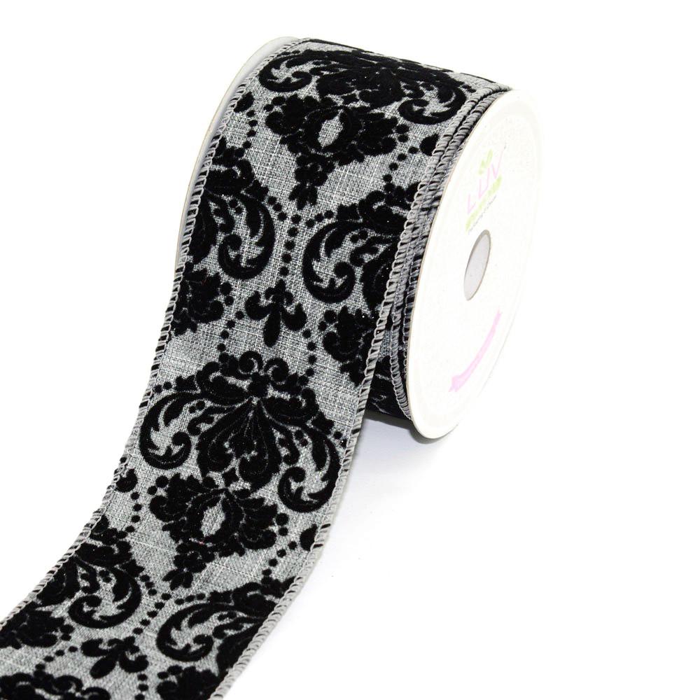 Canvas Ribbon with Flock Damask, 2-1/2-inch, 10 Yards