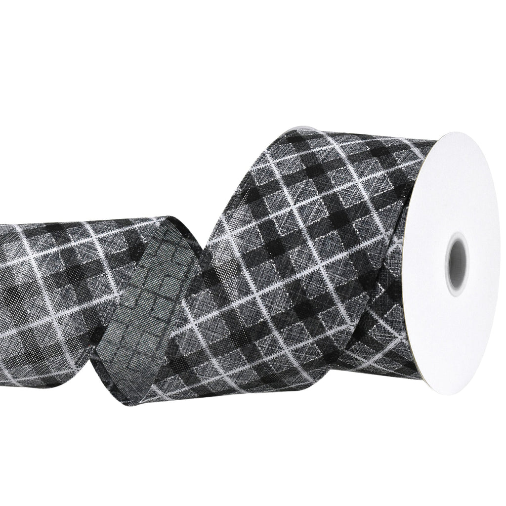 Christmas Diagonal Plaid Faux Linen Wired Ribbon, 2-1/2-inch, 10-yard